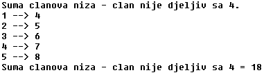 WRITELN('Suma clanova niza - clan nije djeljiv sa 4.');