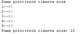 10.1.. Učitati članove niza. Izračunati i ispisati sumu pozitivnih članova niza.