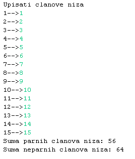10.1.. Učitati članove niza. Izračunati i ispisati sumu parnih i neparnih članova niza odvojeno.