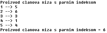 WRITELN('Proizvod clanova niza s parnim indeksom = ',p);
