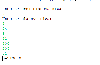 10.1.. Učitati članove niza. Izračunati i ispisati proizvod članova niza koji su djeljivi sa 2 (paran).