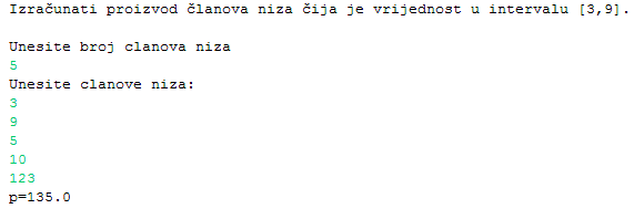 10.1.. Izračunati proizvod članova niza čija je vrijednost u intervalu [3,9].