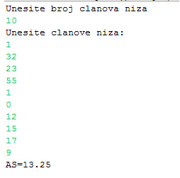 10.5.2. Učitati članove niza. Izračunati i ispisati aritmetičku sredinu svih članova niza sa parnim indeksom.