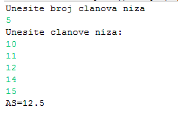 10.5.3. Učitati članove niza. Izračunati i ispisati aritmetički sredinu svih članova niza sa neparnim indeksom.