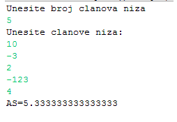 10.5.4. Učitati članove niza. Izračunati i ispisati aritmetičku sredinu pozitivnih članova niza.