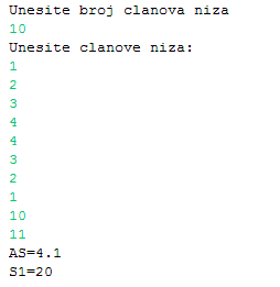 10.5.. Učitati članove niza. Izračunati aritmetičku sredinu i ispisati sumu članova niza manjih od aritmetičke sredine.