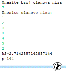 WRITELN('Proizvod clanova vecih od aritmeticke sredine clanova niza');