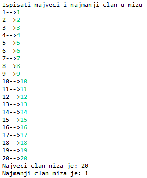 10.2.. 12.119. Učitati niz od 20 brojeva i ispisati najveći i najmanji broj u nizu.