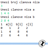 12.102.Učitati dva niza A i B od po n članova. novi niz C od n članova prema slijedećem izrazu: