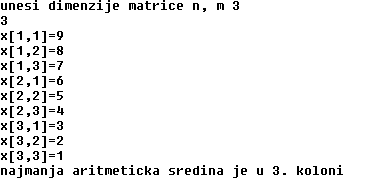 writeln('najmanja aritmeticka sredina je u ',minkol,'. koloni');