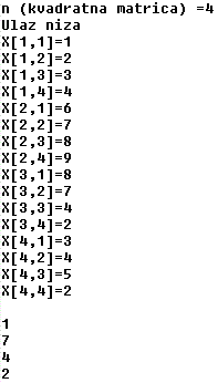 109.1.. Učitati i ispisati dvodimenzionalni niz - matricu nxn. Zatim ispisati članove niza koji su na glavnoj dijagonali.