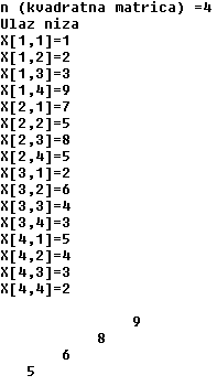 109.1.. Učitati dvodimenzionalni niz. Ispisati elemente na sporednog dijagonali.