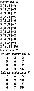 Učitati dva dvodimenzionalna niza i drugi čiji je opšti član: y ij = xij + 3 (dodaj 3). Ispisati oba niza.