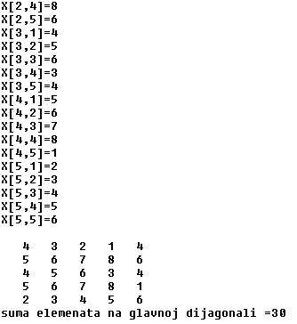 WRITELN('suma elemenata na glavnoj dijagonali =', s);