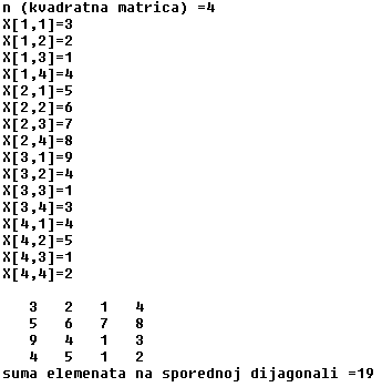 WRITELN('suma elemenata na sporednoj dijagonali =', s);