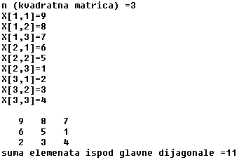 WRITELN('suma elemenata ispod glavne dijagonale =', s);