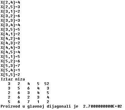 WRITELN('Proizvod u glavnoj dijagonali je ', p);
