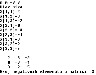 WRITELN('Broj negativnih elemenata u matrici =', br);