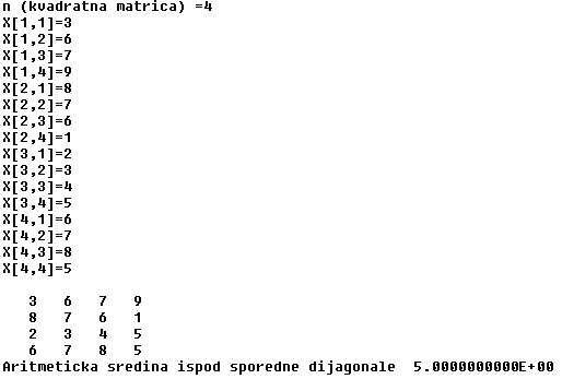 WRITELN('Aritmeticka sredina ispod sporedne dijagonale ', as);