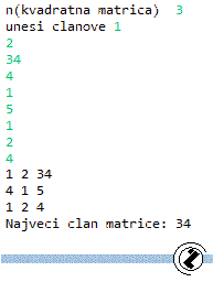 109.3.. Učitati dvodimenzionalni niz - matricu nxm. Naći i ispisati najveći elemenat matrice X[n,m].