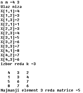 WRITELN('Najmanji element ', k ,'. reda matrice =', min);