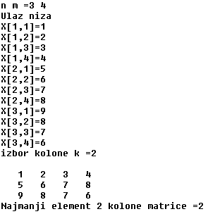 WRITELN('Najmanji element ', k ,'. kolone matrice =', min);
