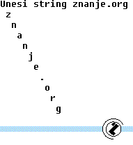 15.2. Učitati niz znakova /STRING/ . Ispisati znak ispod znaka upisanog stringa.