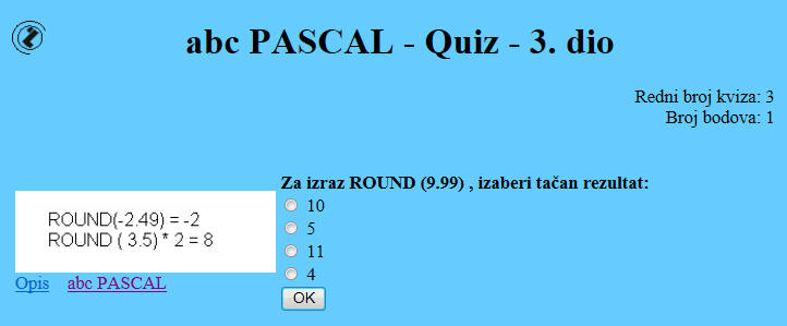 Organizacija i odlike sajta "abc PASCAL" - Provjera QUIZ