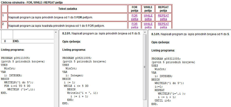Organizacija i odlike sajta "abc PASCAL" - Tri petlje