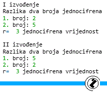 7.1.. Provjeri da li je razlika dva učitana broja jednocifrena. Ako jeste ispisati JEDNOCIFREN.