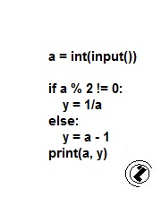 Učitati prirodan broj. Ako je neparan ispisati njegovu recipročnu vrijednost, a ako je paran ispisati kvadrat njegovog prethodnika.