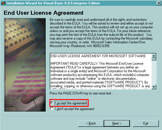 instaliranje Visual Basica, dovoljno je da kliknete na dugme "Exit" i