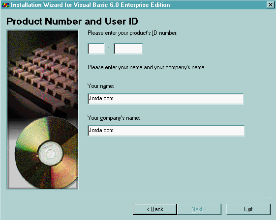 ime) i ime vaše kompanije (u slučaju da ćete vi jedini koristiti Visual Basic