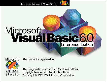 2. Uvodni ekran Visual Basica Kada pokrenete Visual Basic, prvo ćete ugledati uvodni ekran (eng. splash screen). U ovakvoj vrsti prozora obično se prikazuje logotip i podaci o verziji dok se program učitava. |