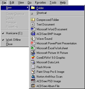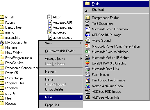 Na File meniju izaberite New i zatim kliknite na Folder. Novi folder pojaviće se na desnoj strani prozora. Umijesto ''New folder'' stavite naziv foldera. |