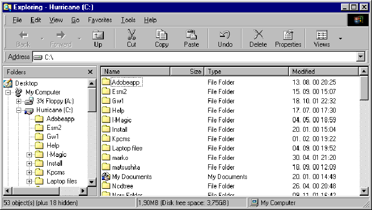 Na lijevoj strani prozora je ''stablo Windows explorera'' koji pokazuje sve foldere, odnosno direktorije, koji se nalaze na računaru.