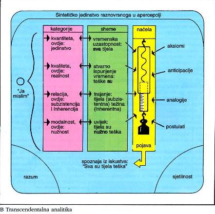 Svaka sinteza moguća je samo pomoću razuma i to tako da raznovrsnost predstava dođe u jedinstvo apercepcije. Razum vrši sintezu samo pomoću apriornih kategorija. Kategorije nam omogućavaju iskustvena saznanja. Kategorije se primjenjuju u praktična saznanja, ali se iz toga stvara pitanje kako se razne kategorije primjenjuju u praktičnom saznanju. Taj problem Kant analizira u ‘moći suđenja’.
