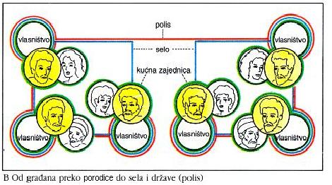 Država je ranija od pojedinca, jer čovek sve svoje potrebe ne može da zadovolji bez države ; otud „u svakom čoveku postoji prirodni nagon“ za državom, a onaj koji je stvorio državu stvorio je najveće dobro , „pošto je čovek , kad je potpuno razvijen , najsavršenije biće, a kad je bez zakona i prava , čovek je najgore biće. Jer nenaoružna nepravda je najgora, a čovek od prirode u svojoj mudrosti i veštini ima oružja koja se u većini slučajeva mogu upotrbiti i u suprotne svrhe“. ( Lukić, 1973: 118)