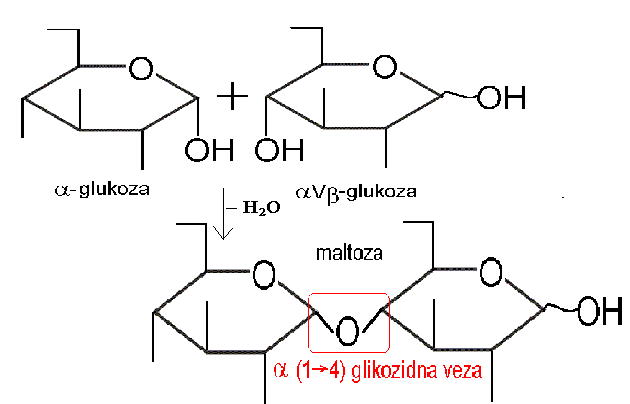 -Maltoza nastaje pri enzimskoj hitrolizi skroba i u većoj količini se može naći u proklijalom ječmu i sladnom ekstratu. Sastavljena je od dve glukozne jedinice koje su međusobno povezane glikozidnom vezom, nastale reakcijom a-anomerne hidroksilne grupom na C-1 atomu prvog molekula D-glukoze sa hidroksilnom grupom na C-4 atomu drugog molekula. I na taj način je ostvarena a(1-4)glikozidna veza