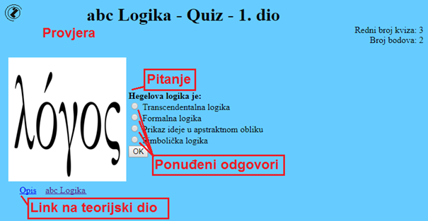 Slika 2. Primjer jednog pitanja iz QUIZ-TEST modula „Abc Logika“