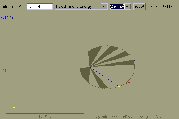El círculo amarillo móvil representa a un planeta.