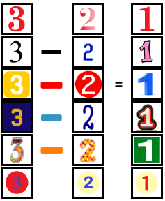 - abc Oduzimanje brojeva - Set 1-1_2 (2-1=1, 3-1=2, 4-1=3, 5-1=4, 3-2=1, 4-2=2, 5-2=3, 4-3=1, 5-3=2) - Test sa indikatorom - 1. i 2. dio jedan klik