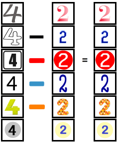 - abc Oduzimanje brojeva - Set 1-1_2 (2-1=1, 3-1=2, 4-1=3, 5-1=4, 3-2=1, 4-2=2, 5-2=3) - Test sa indikatorom - 1. i 2. dio jedan klik