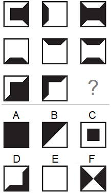 Zadatak: Prepoznavanje oblika koji nedostaje: Rješenje Pravilo 1. Od prva dva lika u redu formira se treći (A ∪ B = C ). Zaključak: 3. red prvi lik bijelo je bijelo ono što je drugi lik crno; treći lik je sve crno. Tačan odgovor: |