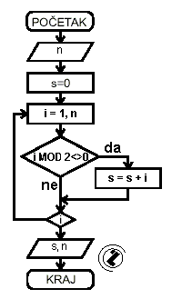 Suma neparnih prirodnih brojeva od 1 do n.