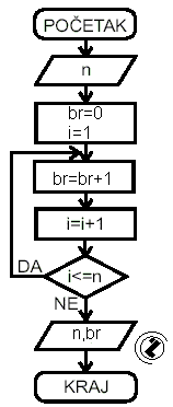 Prebrojati prirodne od 1 do n.