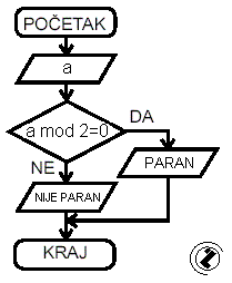 Učitati a. Ako je a djeljivo sa 2 ispisati PARAN, inače ispisati NIJE PARAN.