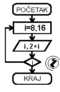Ispisati dvostruku vrijednost prirodnih brojeva od 8 do 16.