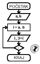 Ispisati trostruku vrijednosti prirodnih brojeva od a do b.