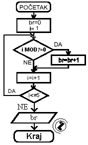 Prebrojati brojeve djeljive sa 7 u intervalu od 1 do 5.